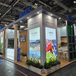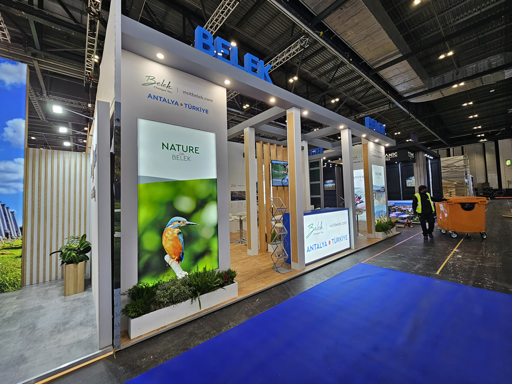 Designed and built by ABL Design, the stand’s open, multi-faceted structure reflected Belek’s identity as a premier destination for tourism, golf, and luxury travel. Towering panels showcased golf courses, pristine beaches, and cultural landmarks, while warm wood finishes and striking green accent panels hinted at the area’s lush landscapes and welcoming hospitality.